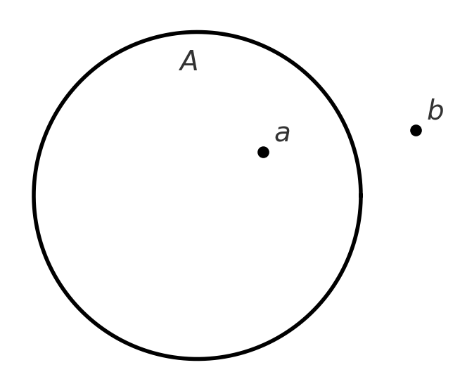 זו הגדרה מאוד כללית, ובלבד שיהיה ברור מהגדרת הקבוצה אילו איברים שייכים לה ואילו לא. אם הקבוצה היא \(A\), אז נכתוב \(a\in A\) כדי לומר שהאיבר \(a\) שייך לקבוצה \(A\). אם הוא לא שייך לה, נכתוב \(a\notin A\).