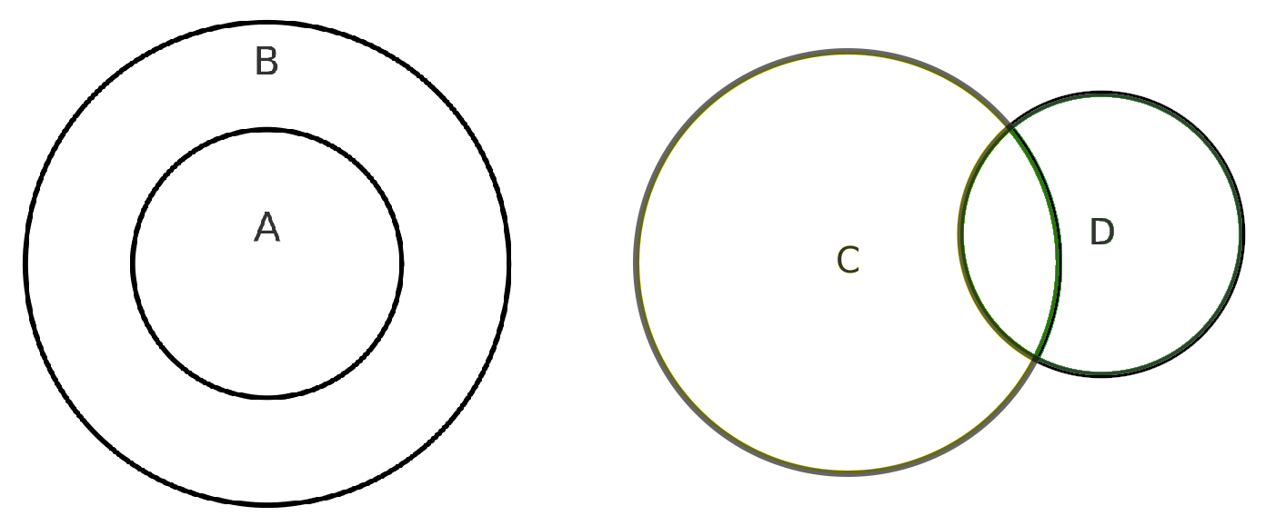 באופן קצת יותר מתמטי: \(A\subseteq B\) אם לכל \(a\in A\) מתקיים \(a\in B\).
