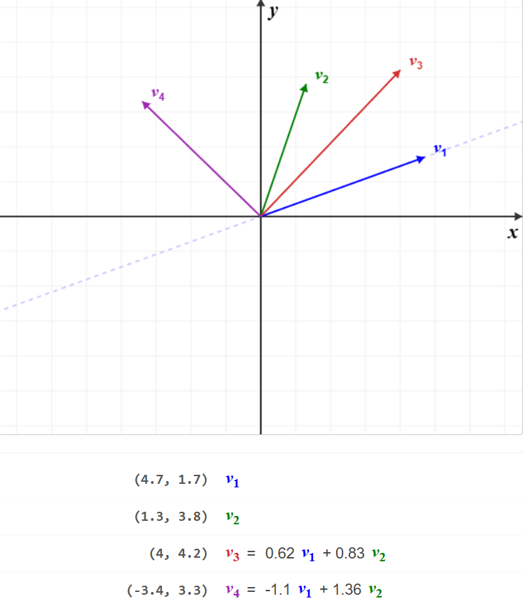 נסתכל על תת-המרחב \(W\subseteq\mathbb{R}^4\) שמוגדר ע"י \[.W=\mathop{\mathrm{Span}}\left(\begin{pmatrix} 1 \\ 2 \\ 3 \\ 4 \end{pmatrix},\begin{pmatrix} 1 \\ 0 \\ -1 \\ 0 \end{pmatrix}\right)\]